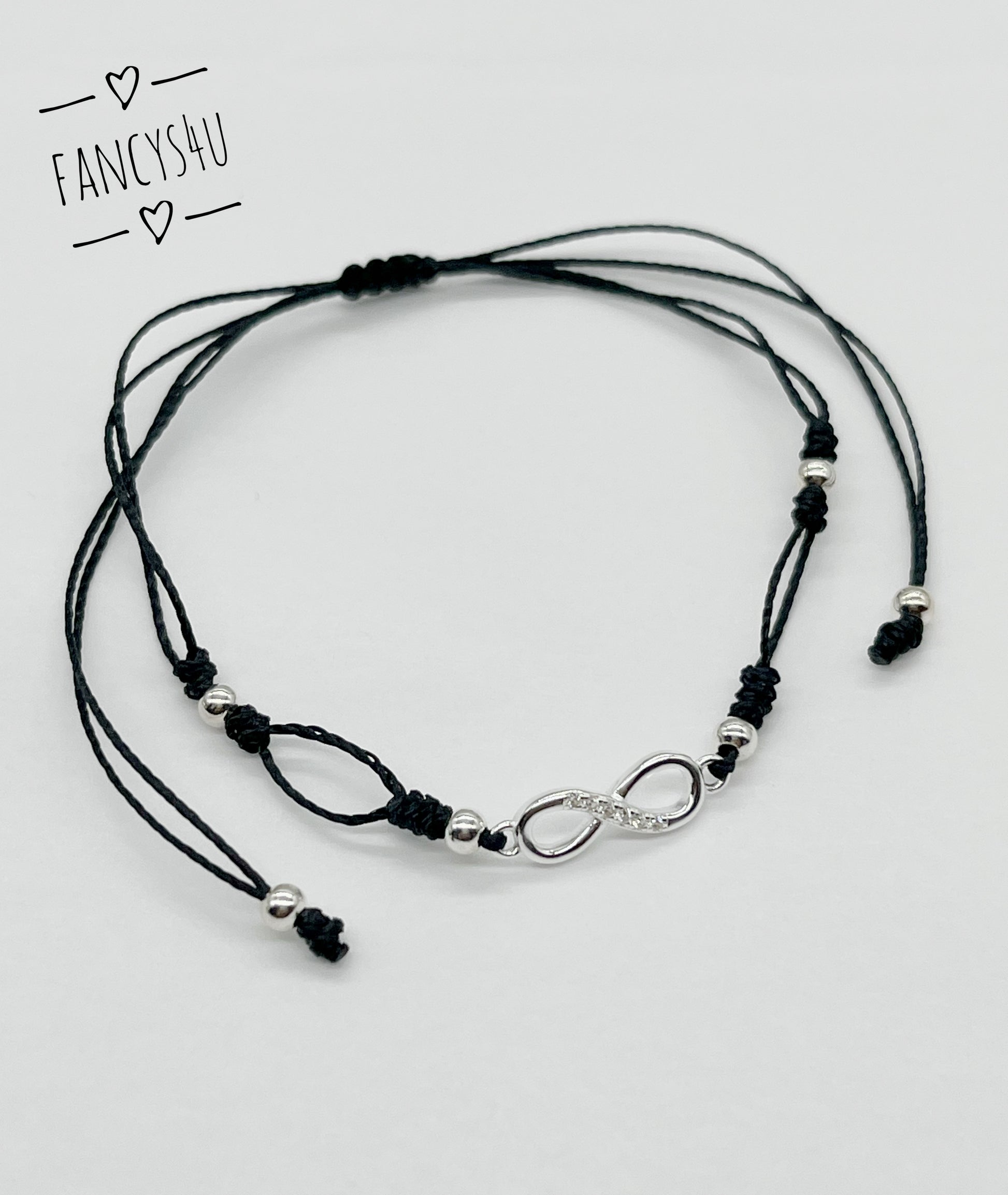 Estos brazaletes de plata 925 presentan el símbolo infinito adornado con zirconias que aportan brillo y delicadeza. Su diseño con detalles en plata realza la elegancia, mientras que su ajuste permite un calce perfecto en cualquier muñeca. Una pieza sofisticada que combina calidad y estilo atemporal para complementar cualquier look.