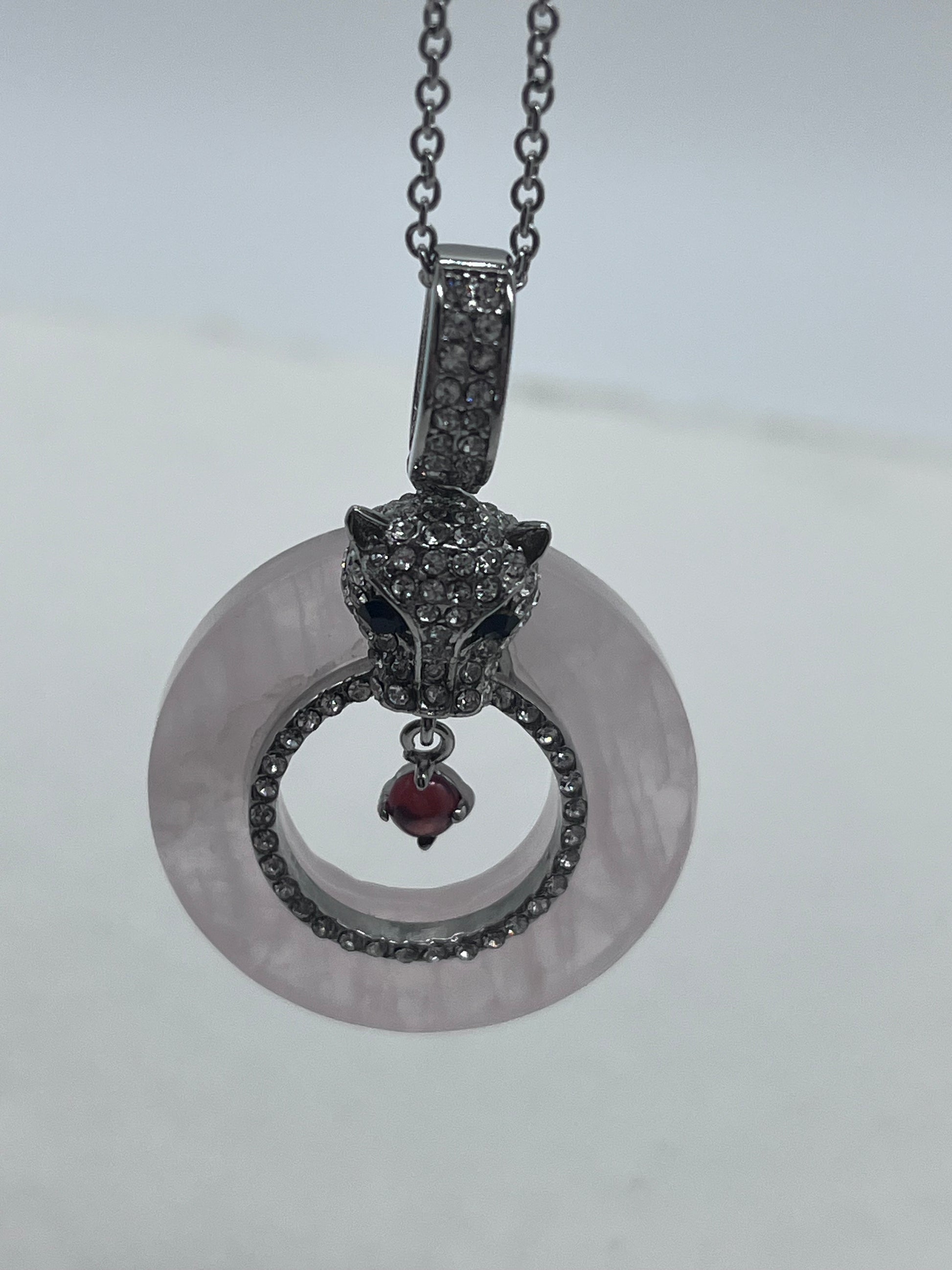 Collar de leopardo Rubi nefrita Rojo Cuarzo Rosa genuino con CZ (chapado en plata)