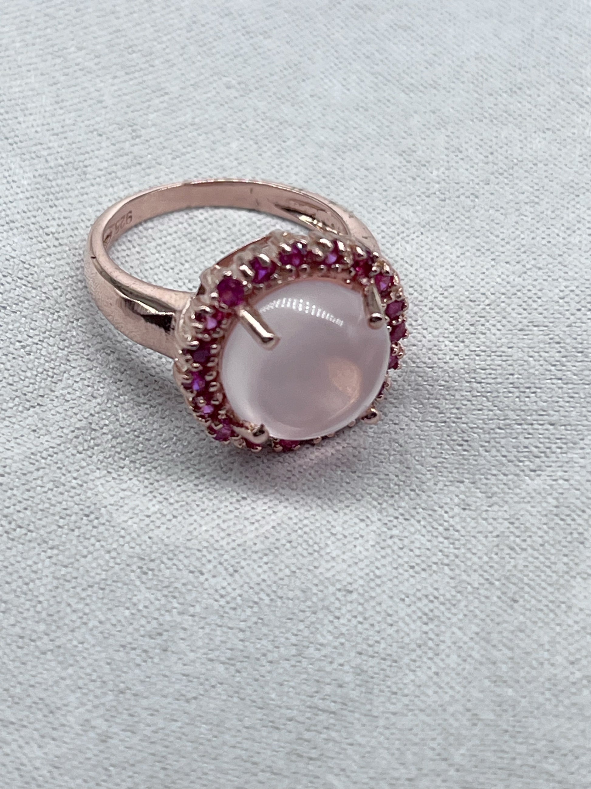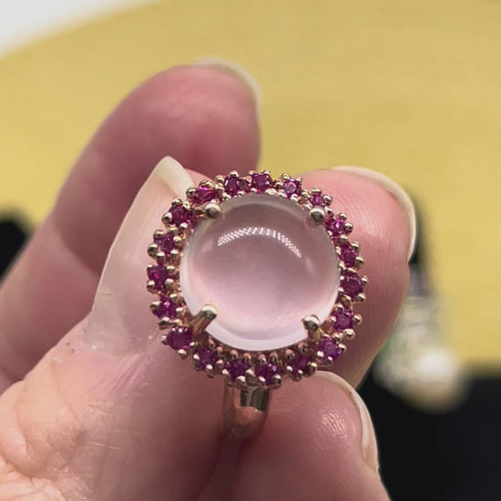 Anillo de plata 925 de 17 x 20 mm con cuarzo rosa y zafiro rosa, bicolor.