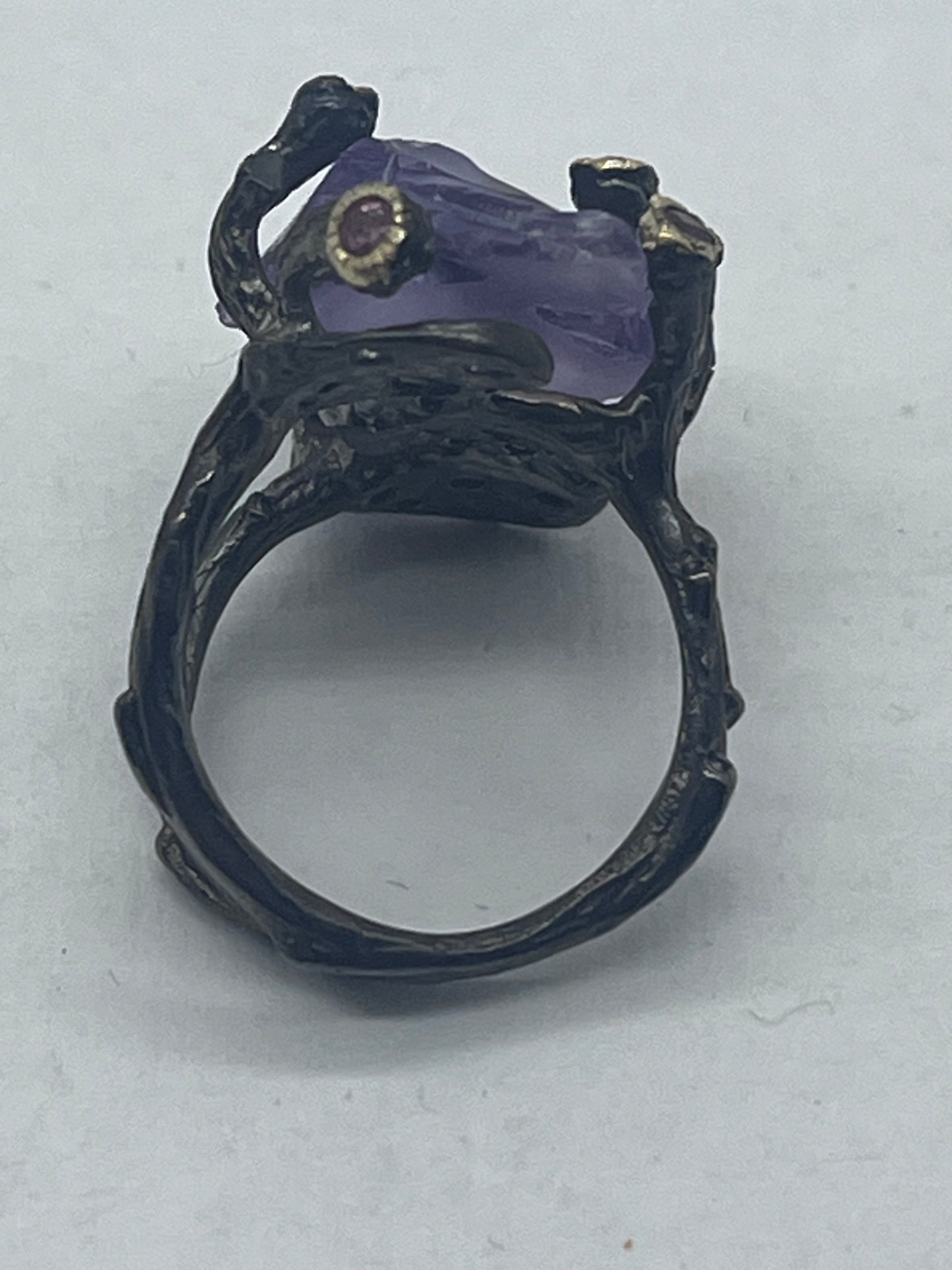 Vintage Sterling Silver Crow Clow Natural Raw Amethyst Statement Ring Sz8.25